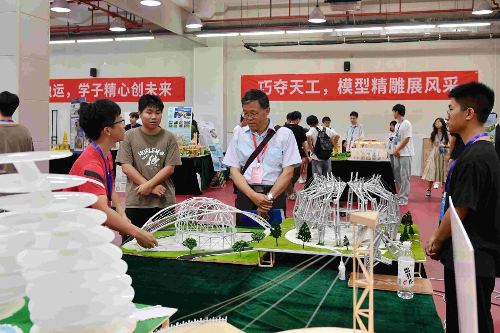 经过2天16小时的结构设计、建模、分析和制作,模型加载组学生完成了竞赛模型进行加载试验。模型展示组学生通过模型、展板、陈述等方式向评审专家展示模型包含的力学概念、结构创新思维和特色。经专家组评审,模型加载组共评选出3项特等奖,9项一等奖,26项二等奖,模型展示组共评选出5项特等奖,12项一等奖,16项二等奖。